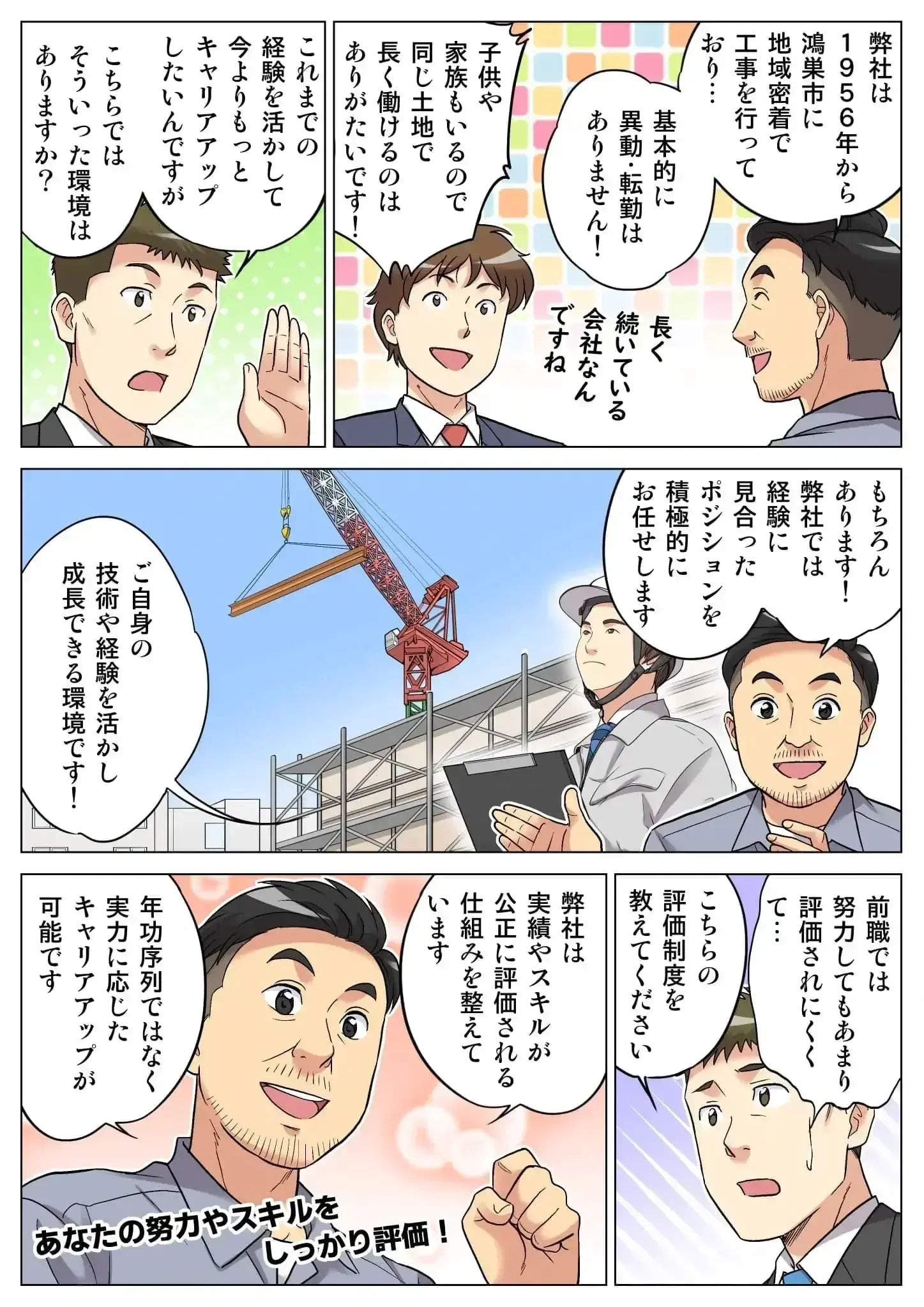 地域密着型の会社ということで、早出残業なしというところは私にとって好きなところです。また、従業員は多くはない会社ではありますが、社長を含めて比較的建設業界では若い世代でまとまりのある会社だと思っています。